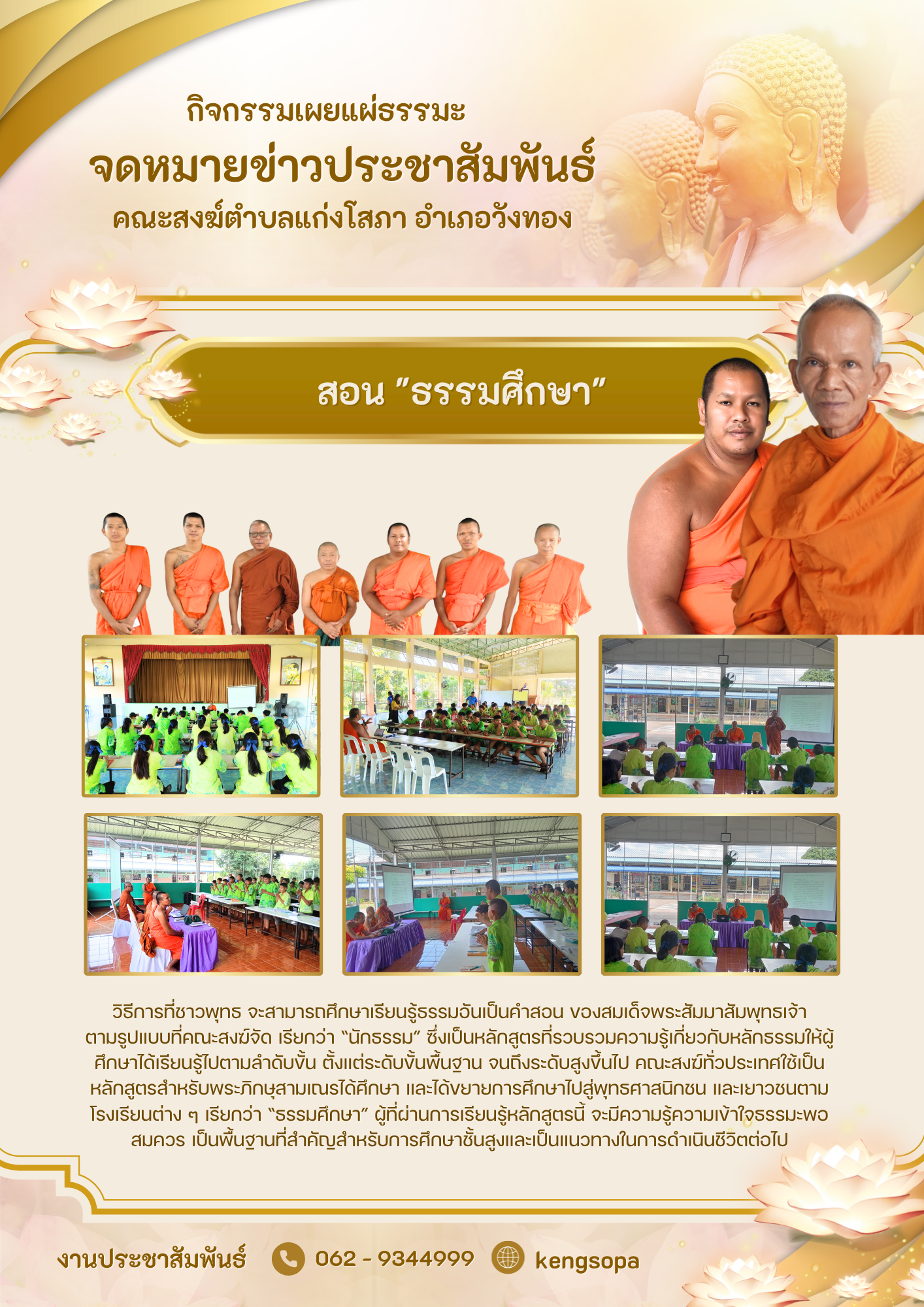 การสนับสนุนให้พระภิกษุสามเณร ศิษย์วัด และประชาชนทั่วไปได้ศึกษาและเรียนรู้หลักธรรมทางพระพุทธศาสนา